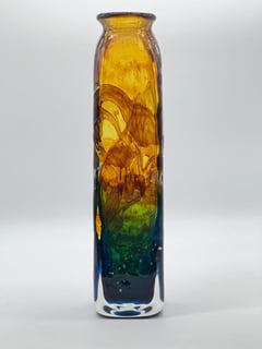 Whitefriars Cello vase in Willow designed by Geoffrey Baxter. Pattern number 9675. First catalogued in 1967. Height 17.5cm.