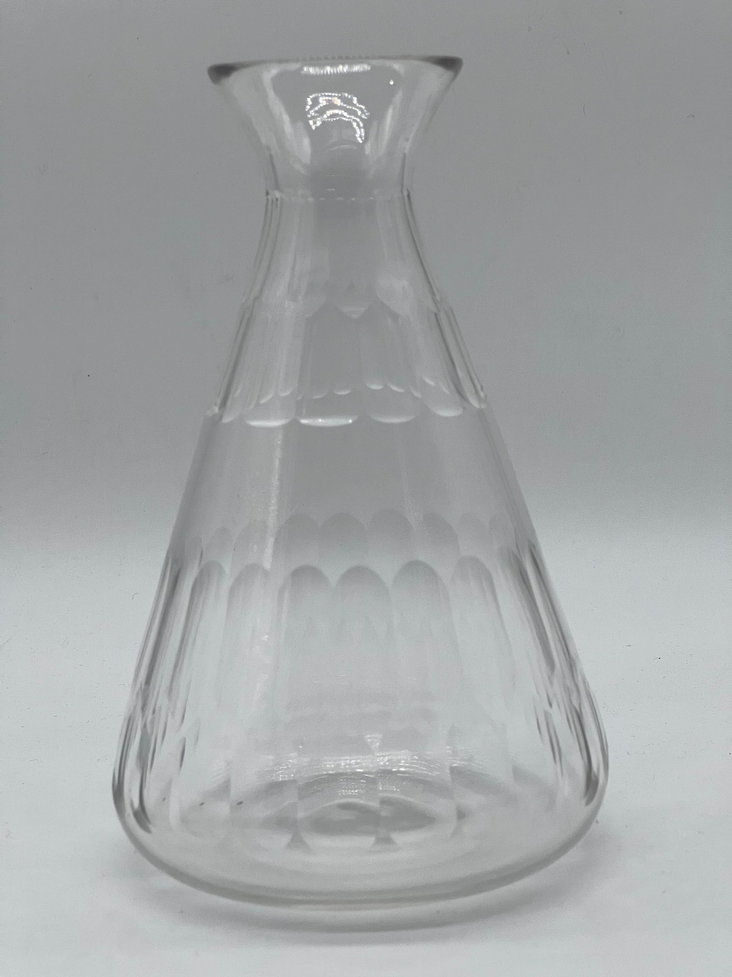 Harry Powell for James Powell and Sons, Whitefriars, an Arts and Crafts Roman cut glass carafe, circa 1880, conical form with facet cuts, 17.5cm high